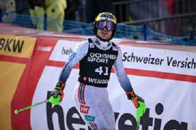 Tommaso SACCARDI, ITA, bib number 59, Action Photo, Men's Slalom at Audi FIS Ski World Cup 2025-26 in Wengen, Switzerland, 2026-01-18, Photo Credit: action press / Dominik Angerer AG KARMAPRESS-AG ALDO LIVERANI SAS