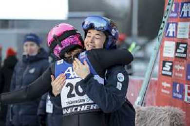 Annika MALACINSKI, USA, bib number 20, Lena BROCARD, FRA, bib number 12, Action Photo, Women's Individual Gundersen Normal Hill HS100/10,0 Km at Viessmann FIS Nordic Combined World Cup 2025-26 in Oberhof, Germany, 2026-01-18, Photo Credit: action press / NocoGirls AG KARMAPRESS-AG ALDO LIVERANI SAS