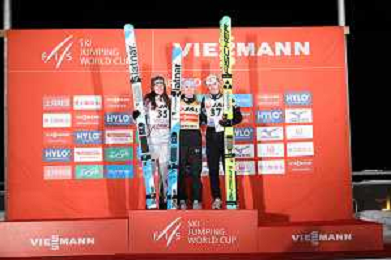 Abigail STRATE, CAN, bib number 35, Nika PREVC, SLO, bib number 40, Anna Odine STROEM, NOR, bib number 37, Podium photo, Women's Large Hill HS137 at Viessmann FIS Ski Jumping World Cup 2025-26 in Sapporo, Japan, 2026-01-24, Photo Credit: action press / Taro Tampo AG KARMAPRESS-AG ALDO LIVERANI SAS