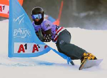 Cody WINTERS, USA, bib number 48, Action Photo , Men's Parallel Giant Slalom at Visa FIS Snowboard Alpine World Cup 2025-26 in Bansko, Bulgaria, 2026-01-18, Photo Credit: action press / Vassil Donev AG KARMAPRESS-AG ALDO LIVERANI SAS