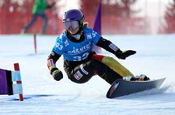 Kaiya KIZUKA, USA, bib number 56, Action Photo, Women's Parallel Giant Slalom at Visa FIS Snowboard Alpine World Cup 2025-26 in Bansko, Bulgaria, 2026-01-18, Photo Credit: action press / Vassil Donev AG KARMAPRESS-AG ALDO LIVERANI SAS