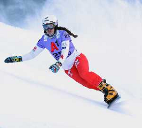 Aurelie MOISAN, CAN, bib number 21, Action Photo , Women's Parallel Giant Slalom at Visa FIS Snowboard Alpine World Cup 2025-26 in Bansko, Bulgaria, 2026-01-18, Photo Credit: action press / Vassil Donev AG KARMAPRESS-AG ALDO LIVERANI SAS