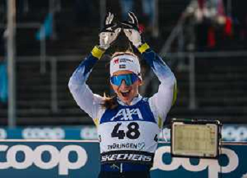 Moa ILAR, SWE, bib number 48, winner photo, Women's 10km Interval Start Classic at Coop FIS Cross-Country World Cup 2025-26 in Oberhof, Germany, 2026-01-18, Photo Credit: action press / Quentin Joly/ KarmapressPhoto -Ag. ALDO LIVERANI SAS