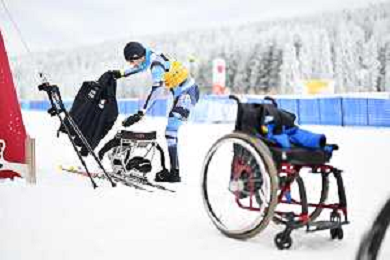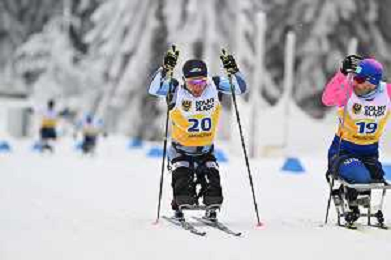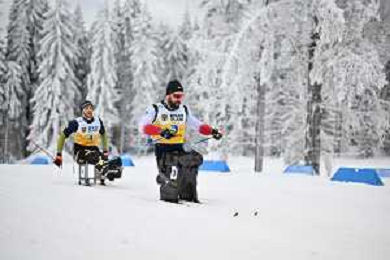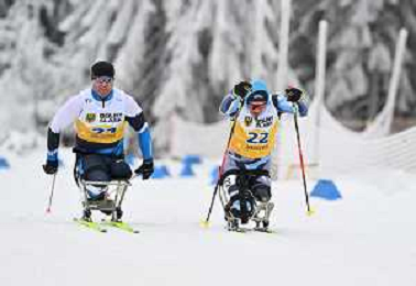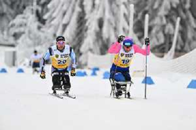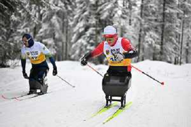 Yuriy BEREZIN, KAZ, bib number 21, Diego COLOMBARI, ITA, bib number 22, action photo, Men's 10km Mass Start Sitting Classic at FIS Para Cross-Country World Cup 2025-26 in Jakuszyce, Poland, 2026-02-01, Photo Credit: action press / Kacper Kirklewski