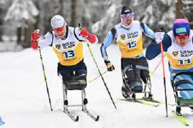 Daniel CNOSSEN, USA, bib number 13, Michele BIGLIONE, ITA, bib number 15, Yerbol KHAMITOV, KAZ, bib number 11, action photo, Men's 10km Mass Start Sitting Classic at FIS Para Cross-Country World Cup 2025-26 in Jakuszyce, Poland, 2026-02-01, Photo Credit: action press / Kacper Kirklewski