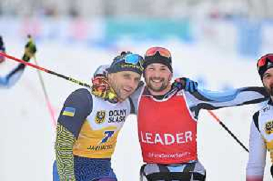 Pavlo BAL, UKR, bib number 7, Giuseppe ROMELE, ITA, bib number 6, winner photo, Men's 10km Mass Start Sitting Classic at FIS Para Cross-Country World Cup 2025-26 in Jakuszyce, Poland, 2026-02-01, Photo Credit: action press / Kacper Kirklewski