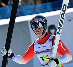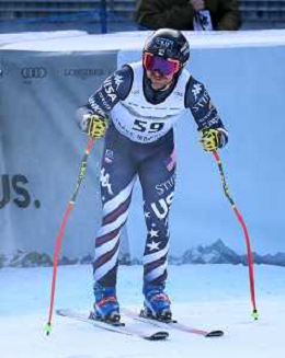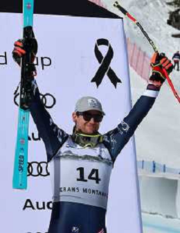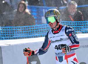 Wiley MAPLE, bib number 36, USA, Finish Line, Men's Downhill at Audi FIS Ski World Cup 2025-26 in Crans Montana, Switzerland, 2026-02-01, Photo Credit: action press / Pierre Teyssot AG KARMAPRESS-AG ALDO LIVERANI SAS