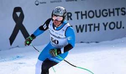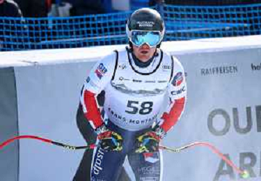 Isaiah NELSON, bib number 59, USA, Finish Line, Men's Downhill at Audi FIS Ski World Cup 2025-26 in Crans Montana, Switzerland, 2026-02-01, Photo Credit: action press / Pierre Teyssot AG KARMAPRESS-AG ALDO LIVERANI SAS