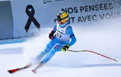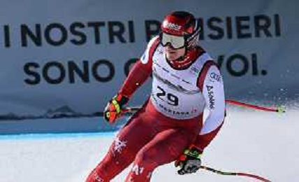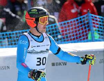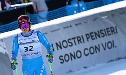 Gregorio BERNARDI, bib number 57, ITA, Finish Line, Men's Downhill at Audi FIS Ski World Cup 2025-26 in Crans Montana, Switzerland, 2026-02-01, Photo Credit: action press / Pierre Teyssot AG KARMAPRESS-AG ALDO LIVERANI SAS