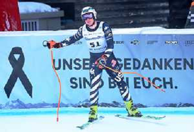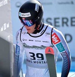 Sam MORSE, bib number 51, USA, Finish Line, Men's Downhill at Audi FIS Ski World Cup 2025-26 in Crans Montana, Switzerland, 2026-02-01, Photo Credit: action press / Pierre Teyssot AG KARMAPRESS-AG ALDO LIVERANI SAS