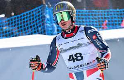 Owen VINTER, bib number 58, GBR, Finish Line, Men's Downhill at Audi FIS Ski World Cup 2025-26 in Crans Montana, Switzerland, 2026-02-01, Photo Credit: action press / Pierre Teyssot AG KARMAPRESS-AG ALDO LIVERANI SAS