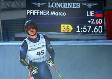 Marco PFIFFNER, bib number 45, LIE, Finish Line, Men's Downhill at Audi FIS Ski World Cup 2025-26 in Crans Montana, Switzerland, 2026-02-01, Photo Credit: action press / Pierre Teyssot AG KARMAPRESS-AG ALDO LIVERANI SAS