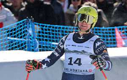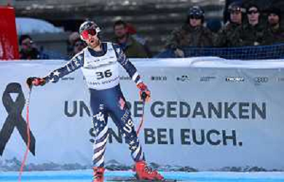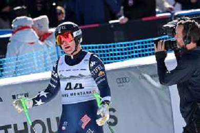 Kyle NEGOMIR, bib number 41, USA, Finish Lin, Men's Downhill at Audi FIS Ski World Cup 2025-26 in Crans Montana, Switzerland, 2026-02-01, Photo Credit: action press / Pierre Teyssot AG KARMAPRESS-AG ALDO LIVERANI SAS