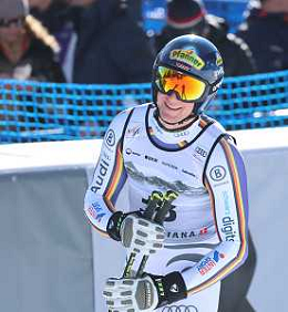 Luis VOGT, bib number 21, GER, Finish Line, Men's Downhill at Audi FIS Ski World Cup 2025-26 in Crans Montana, Switzerland, 2026-02-01, Photo Credit: action press / Pierre Teyssot AG KARMAPRESS-AG ALDO LIVERANI SAS