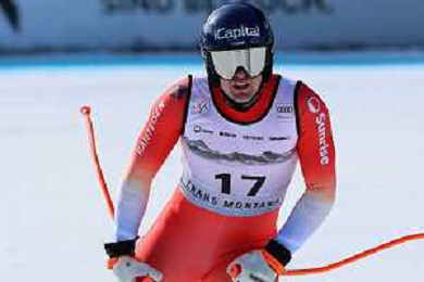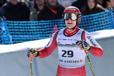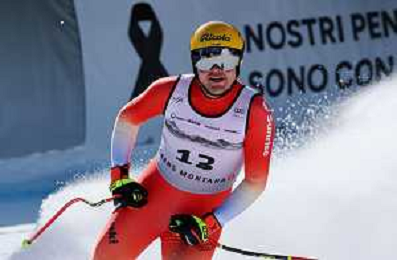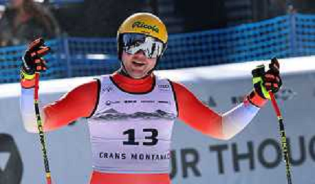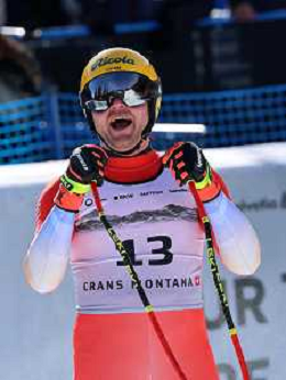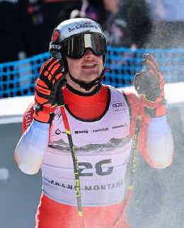 Stefan ROGENTIN, bib number 17, SUI, Finish Line, Men's Downhill at Audi FIS Ski World Cup 2025-26 in Crans Montana, Switzerland, 2026-02-01, Photo Credit: action press / Pierre Teyssot AG KARMAPRESS-AG ALDO LIVERANI SAS