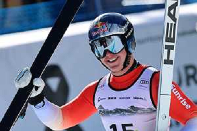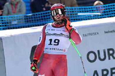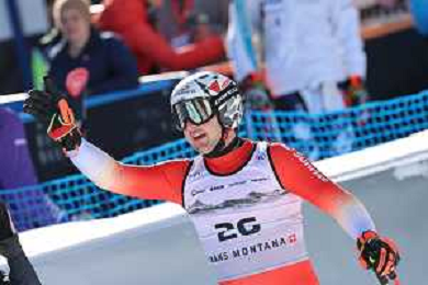 Alessio MIGGIANO, bib number 23, SUI, Finish Line, Men's Downhill at Audi FIS Ski World Cup 2025-26 in Crans Montana, Switzerland, 2026-02-01, Photo Credit: action press / Pierre Teyssot AG KARMAPRESS-AG ALDO LIVERANI SAS