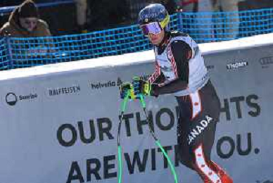 Brodie SEGER, bib number 25, CAN, Finish Line, Men's Downhill at Audi FIS Ski World Cup 2025-26 in Crans Montana, Switzerland, 2026-02-01, Photo Credit: action press / Pierre Teyssot AG KARMAPRESS-AG ALDO LIVERANI SAS