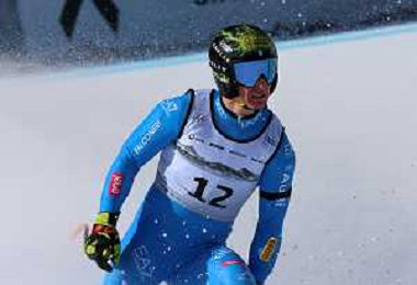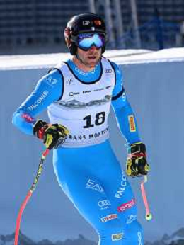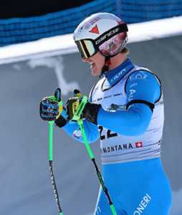 Giovanni FRANZONI, bib number 12, ITA, Finish Line, Men's Downhill at Audi FIS Ski World Cup 2025-26 in Crans Montana, Switzerland, 2026-02-01, Photo Credit: action press / Pierre Teyssot AG KARMAPRESS-AG ALDO LIVERANI SAS