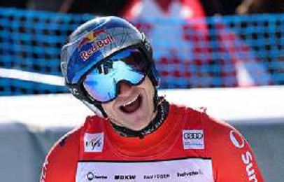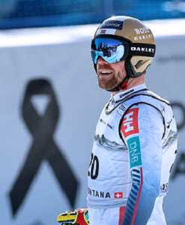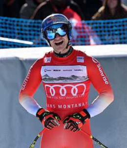 Niels HINTERMANN, bib number 13, SUI, Finish Line, Men's Downhill at Audi FIS Ski World Cup 2025-26 in Crans Montana, Switzerland, 2026-02-01, Photo Credit: action press / Pierre Teyssot AG KARMAPRESS-AG ALDO LIVERANI SAS