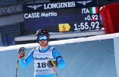Mattia CASSE, bib number 18, ITA, Finish Line, Men's Downhill at Audi FIS Ski World Cup 2025-26 in Crans Montana, Switzerland, 2026-02-01, Photo Credit: action press / Pierre Teyssot AG KARMAPRESS-AG ALDO LIVERANI SAS