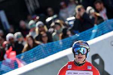 Vincent WIESER, bib number 49, AUT, Finish Line, Men's Downhill at Audi FIS Ski World Cup 2025-26 in Crans Montana, Switzerland, 2026-02-01, Photo Credit: action press / Pierre Teyssot AG KARMAPRESS-AG ALDO LIVERANI SAS