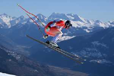 Sam ALPHAND, bib number 53, FRA, Action Photo , Men's Downhill at Audi FIS Ski World Cup 2025-26 in Crans Montana, Switzerland, 2026-02-01, Photo Credit: action press / Markus Ulmer AG KARMAPRESS-AG ALDO LIVERANI SAS
