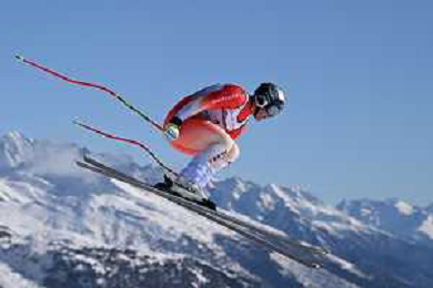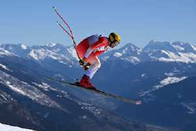 Luis VOGT, bib number 21, GER, Action Photo , Men's Downhill at Audi FIS Ski World Cup 2025-26 in Crans Montana, Switzerland, 2026-02-01, Photo Credit: action press / Markus Ulmer AG KARMAPRESS-AG ALDO LIVERANI SAS