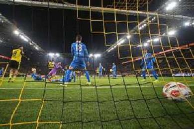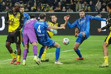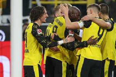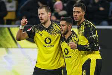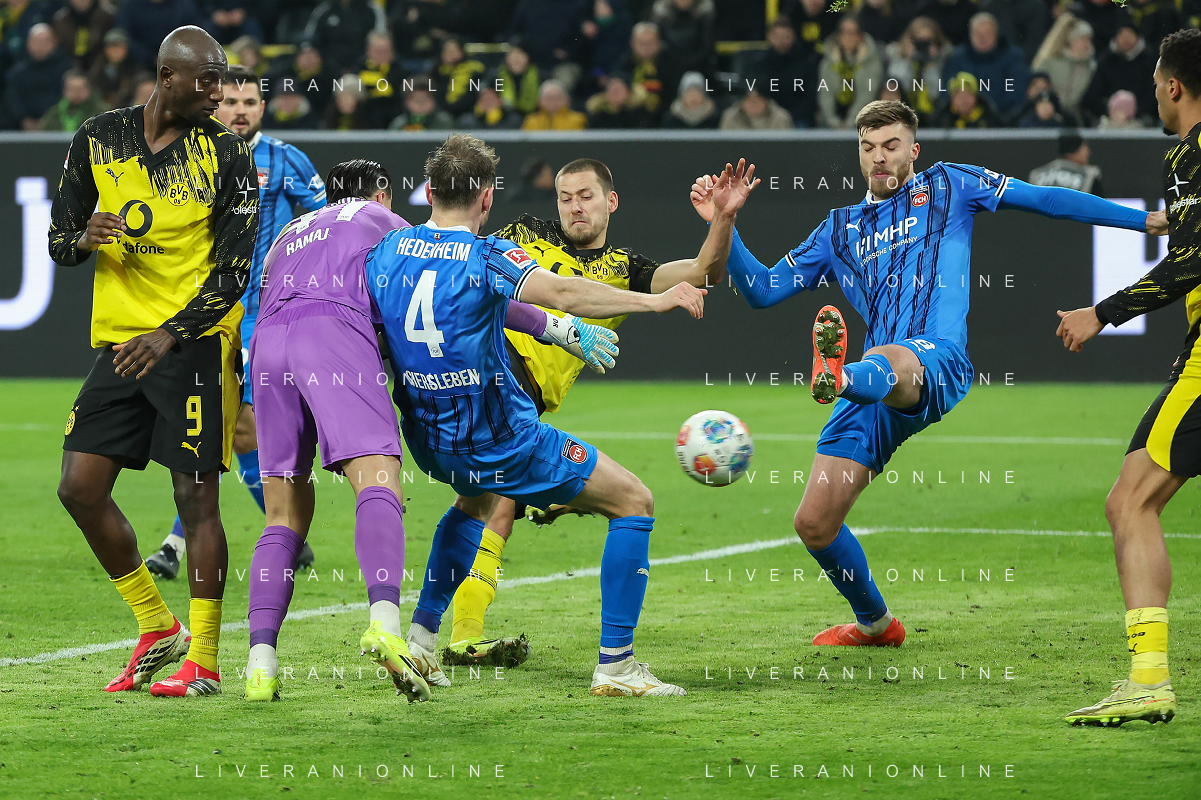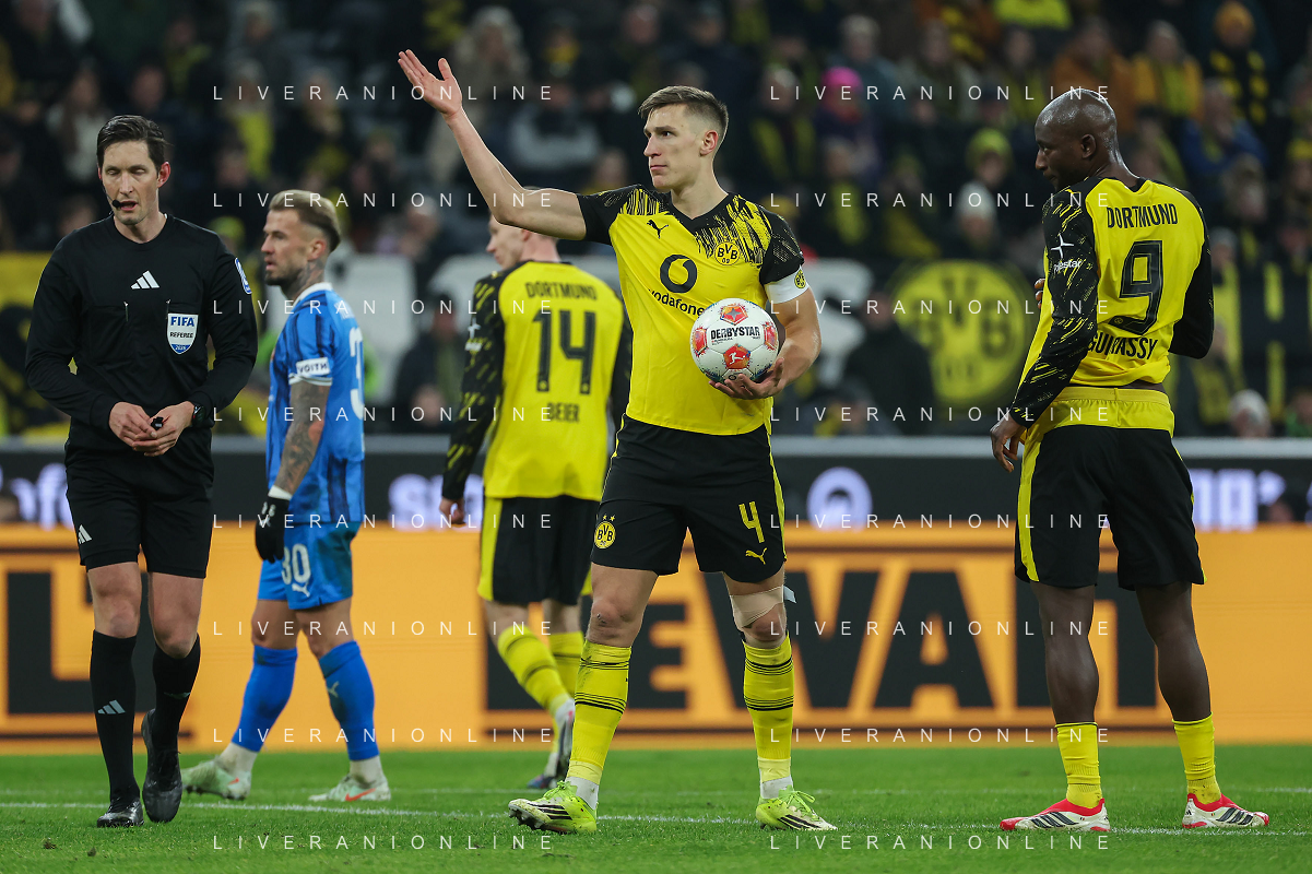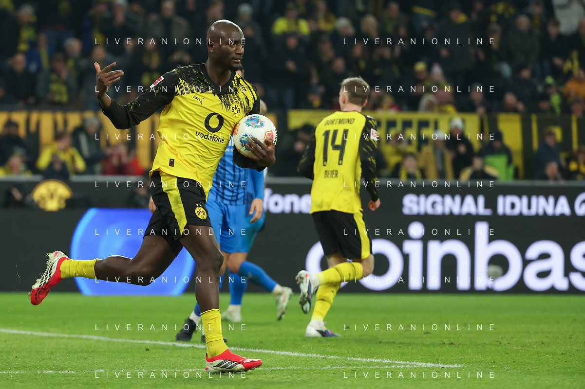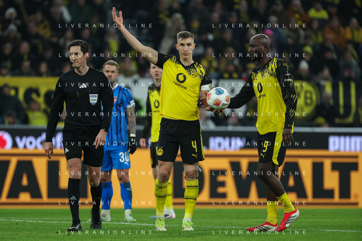 1. Bundesliga - Borussia Dortmund - 1. FC Heidenheim am 01.02.2026 im Signal Iduna Park in Dortmund Jubel, Torjubel, Torschuetze, Torschütze Serhou Guirassy (Dortmund 9) jubelt nach seinem Tor zum 3 zu 2 mit der Mannschaft, hier mit Fabio Silva (Dortmund 21), Julian Brandt (Dortmund 10), Nico Schlotterbeck (Dortmund 4), Waldemar Anton (Dortmund 3) Foto: osnapix / Marcus Hirnschal DFL regulations prohibit any use of photographs as image sequences and/or quasi-video / action press/Karmapress-Ag. Aldo Liverani Sas
