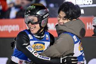 Ren NIKAIDO, JPN, bib nu 54, Podium Photo, Men's Large Hill HS147 at Viessmann FIS Ski Jumping World Cup 2025-26 in Willingen, Germany, 2026-02-01, Photo Credit: action press / Dominik Berchtold/Karmapress-Ag. Aldo Liverani Sas