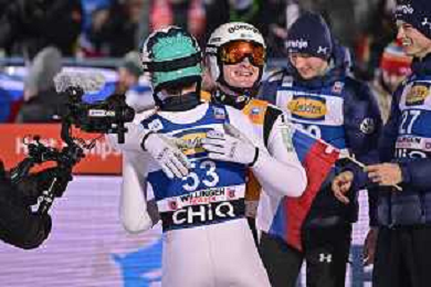 Nika PREVC, SLO, bib nu 34, Podium Photo, Men's Large Hill HS147 at Viessmann FIS Ski Jumping World Cup 2025-26 in Willingen, Germany, 2026-02-01, Photo Credit: action press / Dominik Berchtold/Karmapress-Ag. Aldo Liverani Sas