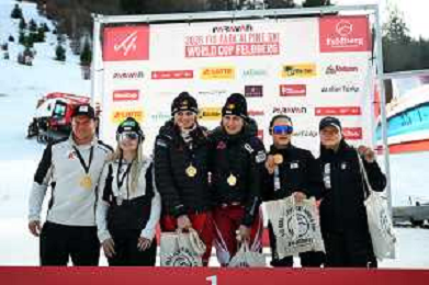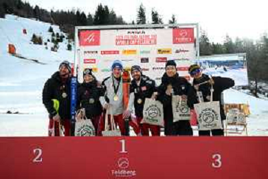 Feldberg, FIS WORLD CUP 2026, Women, PAL, Slalom, Awards Photo, Team GER Photo, Anna-Lena FORSTER, GER, bib number 17, women, Awards Photo, Anna-Maria RIEDER, GER, bib number 7, women, Awards Photo, Andrea ROTHFUSS, GER, bib number 12, women, Awards Photo, Leon GENSERT, GER, bib number 51, men, Awards Photo, Women's Slalom at FIS Para Alpine Skiing World Cup 2025-26 in Feldberg, Germany, 2026-01-23, Photo Credit: action press / Markus Ulmer