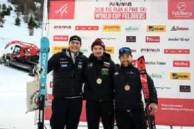 Feldberg, FIS WORLD CUP 2026, Women, PAL, Slalom, Awards Photo, Team NZL Photo, Adam HALL, NZL, bib number 31, men, Awards Photo, Josh HANLON, AUS, bib number 48, men, Awards Photo, Men's Slalom at FIS Para Alpine Skiing World Cup 2025-26 in Feldberg, Germany, 2026-01-23, Photo Credit: action press / Markus Ulmer