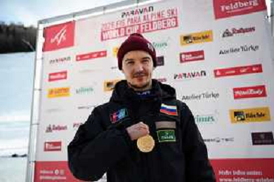 Aleksei BUGAEV, RUS, bib number 26, men, Winner Photo, AwardsPhoto, Men's Slalom at FIS Para Alpine Skiing World Cup 2025-26 in Feldberg, Germany, 2026-01-23, Photo Credit: action press / Markus Ulmer