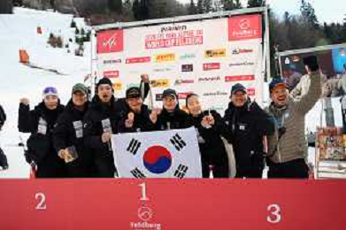 Feldberg, FIS WORLD CUP 2026, Women, PAL, Slalom, Awards Photo, Team KOR Photo, Sara CHOI, KOR, bib number 4, women, Awards Photo, Mingyu HWANG, KOR, bib number 23, men, Awards Photo, Men's Slalom at FIS Para Alpine Skiing World Cup 2025-26 in Feldberg, Germany, 2026-01-23, Photo Credit: action press / Markus Ulmer