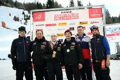 Feldberg, FIS WORLD CUP 2026, Women, PAL, Slalom, Awards Photo, Team RUS Photo, Aleksei BUGAEV, RUS, bib number 26, men, Awards Photo, Varvara VORONCHIKHINA, RUS, bib number 8, women, Awards Photo, Women's Slalom at FIS Para Alpine Skiing World Cup 2025-26 in Feldberg, Germany, 2026-01-23, Photo Credit: action press / Markus Ulmer