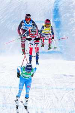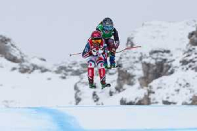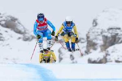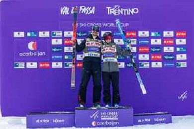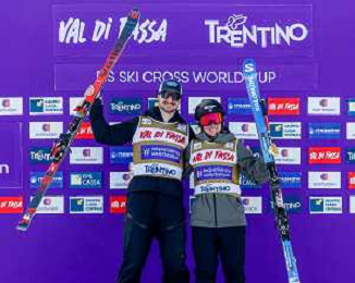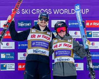Reece Howden, Sandra Naslund, Golden Bib, Event Photo, Men's Ski Cross at FIS Ski Cross World Cup 2025-26 in Val di Fassa, Italy, 2026-01-30, Photo Credit: action press / Arnd Wiegmann AG KARMAPRESS-AG ALDO LIVERANI SAS