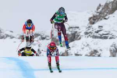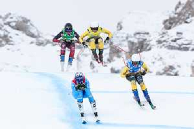 Daniela MAIER, GER, bib number 2, Saskja LACK, SUI, bib number 7, Talina GANTENBEIN, SUI, bib number 10, Sixtine COUSIN, SUI, bib number 12, Action Photo , Women's Ski Cross at FIS Ski Cross World Cup 2025-26 in Val di Fassa, Italy, 2026-01-30, Photo Credit: action press / Arnd Wiegmann AG KARMAPRESS-AG ALDO LIVERANI SAS
