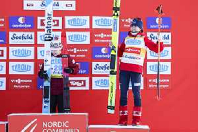 Stefan RETTENEGGER, AUT, bib number 52, Johannes LAMPARTER, AUT, bib number 53, Podium Photo, Women's Individual Mass Start Normal Hill HS109/5,0 Km at Viessmann FIS Nordic Combined World Cup 2025-26 in Seefeld, Austria, 2026-01-30, Photo Credit: action press / Julia Piatkowska AG KARMAPRESS-AG ALDO LIVERANI SAS