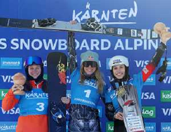 Podium Photo, Michelle DEKKER, NED, bib number 3, Women's Parallel Giant Slalom at Visa FIS Snowboard Alpine World Cup 2025-26 in Simonhoehe, Austria, 2026-01-23, Photo Credit: action press / Miha Matavz AG KARMAPRESS-AG ALDO LIVERANI SAS
