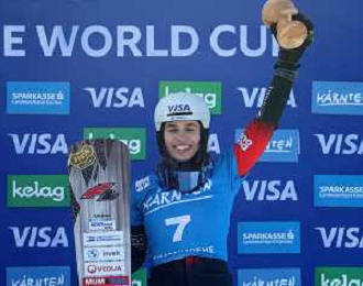 Millie BONGIORNO, AUS, bib number 36, Action Photo, Parallel Giant Slalom Team at Visa FIS Snowboard Alpine World Cup 2025-26 in Simonhoehe, Austria, 2026-01-24, Photo Credit: action press / Miha Matavz AG KARMAPRESS-AG ALDO LIVERANI SAS