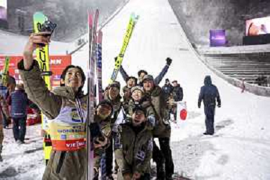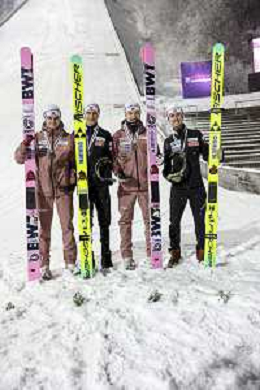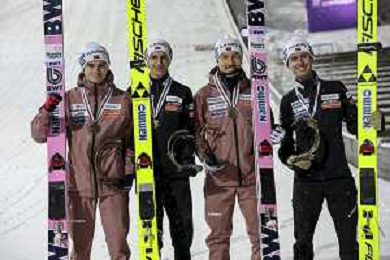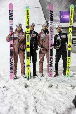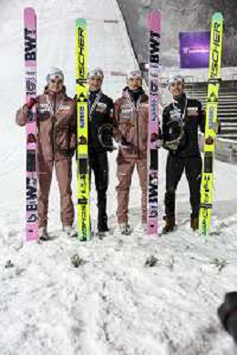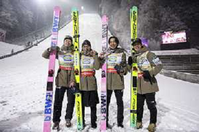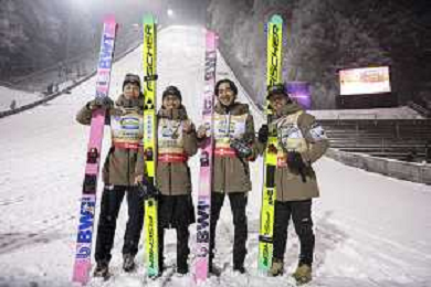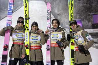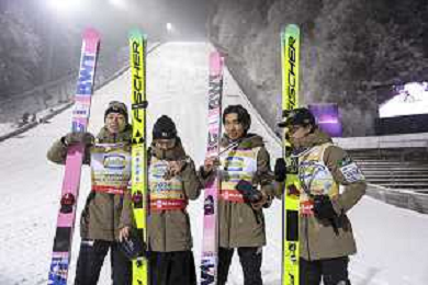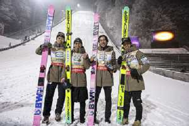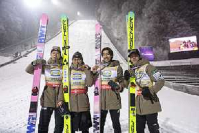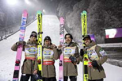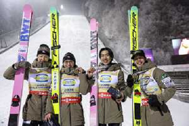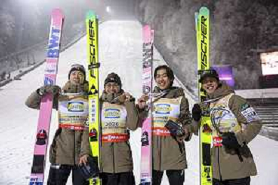 Ryoyu KOBAYASHI, JPN, bib number 8-1, Tomofumi NAITO, JPN, bib number 8-2, Naoki NAKAMURA, JPN, bib number 8-3, Ren NIKAIDO, JPN, bib number 8-4, Winner Photo, Men's Team Flying Hill HS235 at Ski Jumping FIS Ski-Flying World Championships 2025-26 in Oberstdorf, Germany, 2026-01-25, Photo Credit: action press / Julia Piatkowska AG KARMAPRESS-AG ALDO LIVERANI SAS