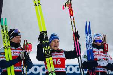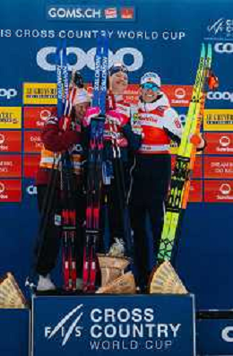 Jessie DIGGINS, USA, Johanna MATINTALO, FIN, Astrid Oeyre SLIND, NOR, podium Photo, Women's 20km Mass Start Classic at Coop FIS Cross-Country World Cup 2025-26 in Goms, Switzerland, 2026-01-25, Photo Credit: action press / Quentin Joly AG KARMAPRESS-AG ALDO LIVERANI SAS