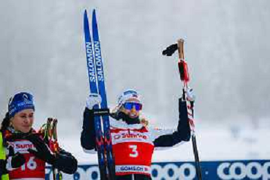 Jessie DIGGINS, USA, bib number 1, run 1, action photo, Women's 20km Mass Start Classic at Coop FIS Cross-Country World Cup 2025-26 in Goms, Switzerland, 2026-01-25, Photo Credit: action press / Quentin Joly AG KARMAPRESS-AG ALDO LIVERANI SAS