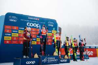 Laura GIMMLER, GER, Linn SVAHN, SWE, Nadine FAEHNDRICH, SUI, Maja DAHLQVIST, SWE, Johanna MATINTALO, FIN, Emma RIBOM, SWE, podium photo, Women's Sprint Final Classic at Coop FIS Cross-Country World Cup 2025-26 in Goms, Switzerland, 2026-01-24, Photo Credit: action press / Quentin Joly AG KARMAPRESS-AG ALDO LIVERANI SAS