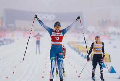 Johanna MATINTALO, FIN, bib number 12, run 1, winner photo, Women's 20km Mass Start Classic at Coop FIS Cross-Country World Cup 2025-26 in Goms, Switzerland, 2026-01-25, Photo Credit: action press / Quentin Joly AG KARMAPRESS-AG ALDO LIVERANI SAS