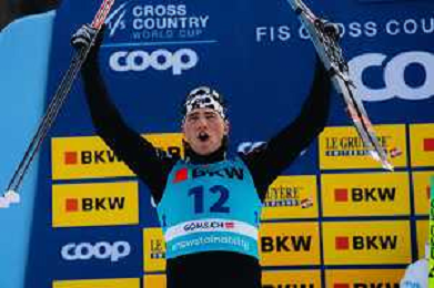 Gus SCHUMACHER, USA, winner photo, Men's Sprint Final Classic at Coop FIS Cross-Country World Cup 2025-26 in Goms, Switzerland, 2026-01-24, Photo Credit: action press / Quentin Joly AG KARMAPRESS-AG ALDO LIVERANI SAS