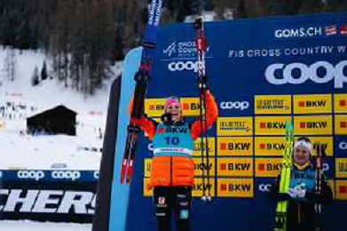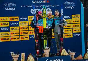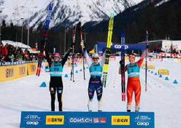 Laura GIMMLER, GER, Linn SVAHN, SWE, Nadine FAEHNDRICH, SUI, podium Photo, Women's Sprint Final Classic at Coop FIS Cross-Country World Cup 2025-26 in Goms, Switzerland, 2026-01-24, Photo Credit: action press / Quentin Joly AG KARMAPRESS-AG ALDO LIVERANI SAS