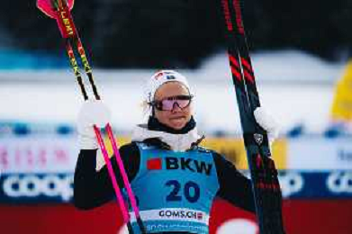 Nadine FAEHNDRICH, SUI, bib number 22, run 1, winner photo, Women's 20km Mass Start Classic at Coop FIS Cross-Country World Cup 2025-26 in Goms, Switzerland, 2026-01-25, Photo Credit: action press / Quentin Joly AG KARMAPRESS-AG ALDO LIVERANI SAS
