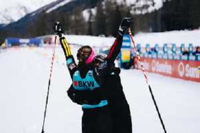 Laura GIMMLER, GER, Coletta RYDZEK, GER, winner photo, Women's Sprint Final Classic at Coop FIS Cross-Country World Cup 2025-26 in Goms, Switzerland, 2026-01-24, Photo Credit: action press / Quentin Joly AG KARMAPRESS-AG ALDO LIVERANI SAS