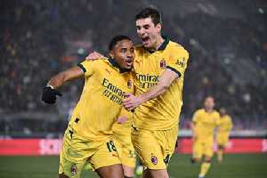 Bologna vs Milan nella foto Christopher Nkunku (Milan) e Matteo Gabbia (Milan) esultanza dopo il gol del 2 a 0 Bologna 03-02-2026 Stadio Renato Dall'Ara Bologna vs Milan Campionato Serie A Enilive - 23a giornata foto Roberto Garavaglia/Agenzia Aldo Liverani sas